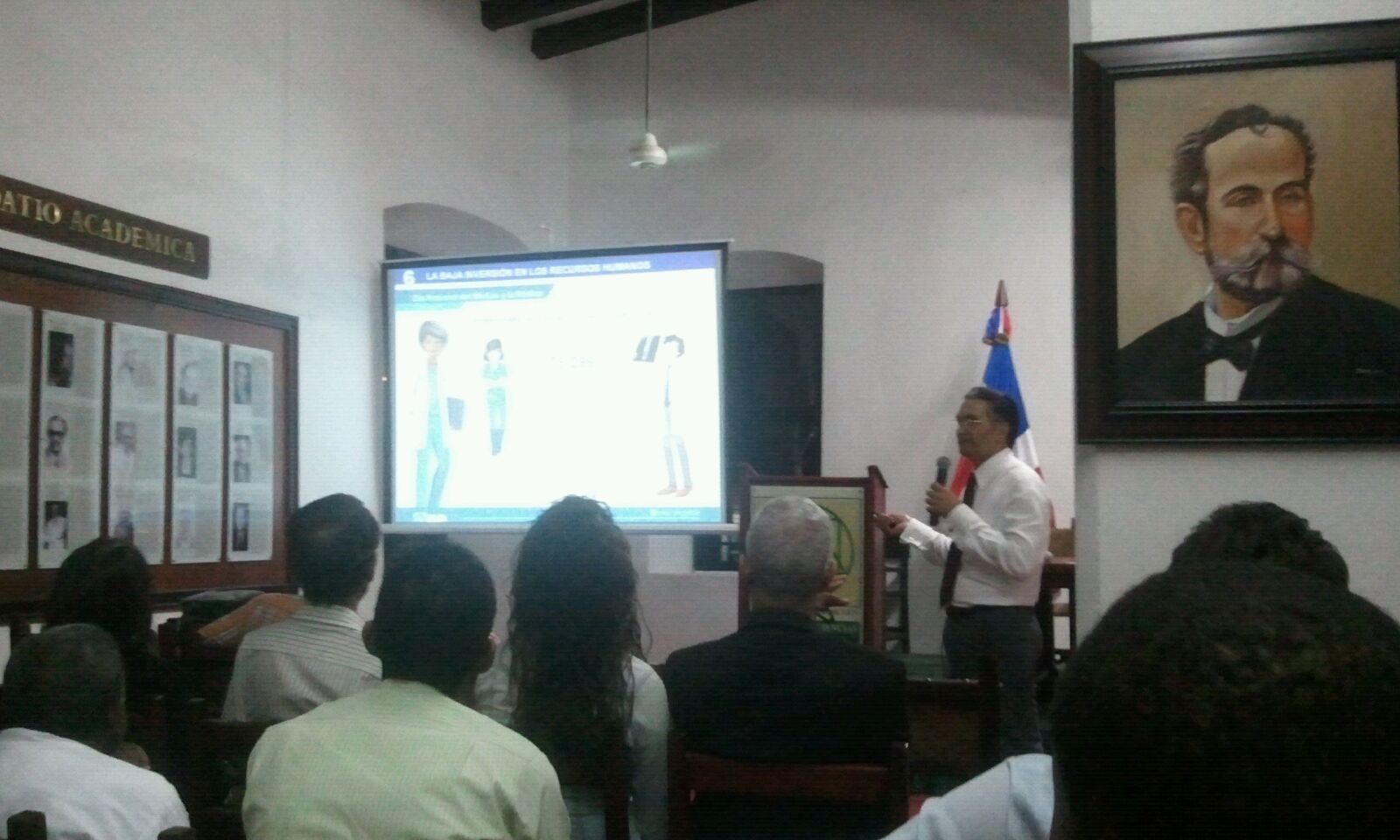 Santo Domingo, República Dominicana.- El Dr. Roberto Sanchez mientras imparte una conferencia titulada "Las verdaderas causan de la crisis del sistema nacional de salud dominicano" en la sala de eventos y exposiciones de la academia de ciencias de la República Dominicana.