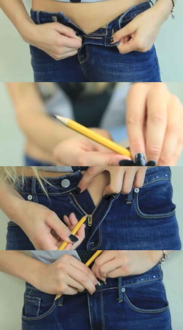 Si la cremallera de tus jeans favoritos se traba, pasa varias veces el grafito de un lápiz sobre los dientes. Ahora deslizará sin problemas.