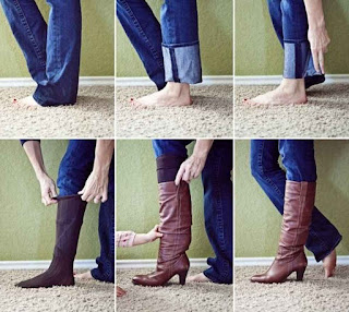 Antes de ponerte botas sobre un pantalón suelto usa calcetines primero sobre los pantalones.
