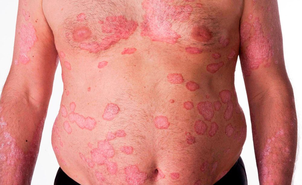 Los pacientes con psoriasis sufren cambios en la piel (placas) en la zona de los codos y las rodillas. En algunas ocasiones las lesiones se extienden por todo el cuerpo, incluso por el cuero cabelludo.